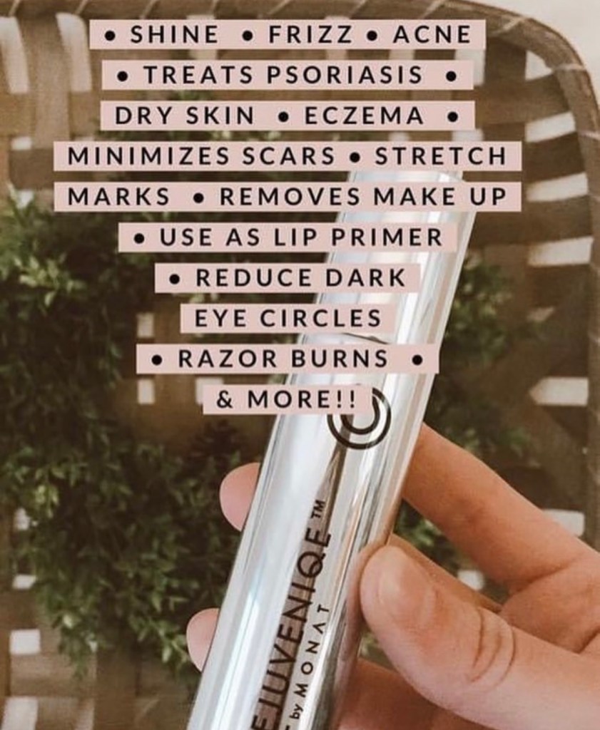 Our Rejuveniqe Oil is also known as our Liquid Gold Elixir. Paraben & Sulfate free. It truly has 101 uses and we are still finding more! I saw an article that the Kardashians put this all over their body. I use this oil from head to toe, on my hair, scalp, face and body! I suffer from dry scalp and some flaky red patches on my skin due to my eczema as well so this oil has been such a help. I use this as an oil treatment on some nights or hours before I wash my hair. I use some drops on my skin and face & even mix it with my foundation for a dewy glowy finish! It is our most sought out product. A little goes a long way, just a few drops include all the benefits you need for healthy, nourished hair and skin! Check out the many benefits…Comment below if you want the full link of the 101 uses of this oil! & let me know if you want to get this oil I’m sure you’ll love it!