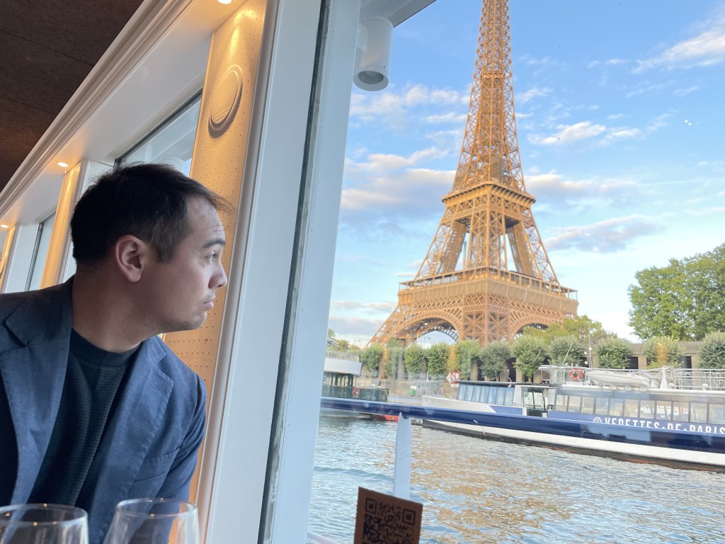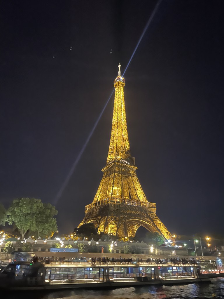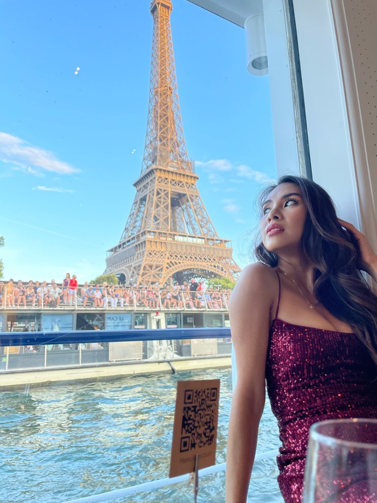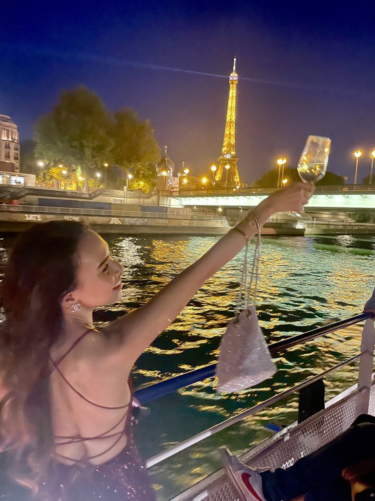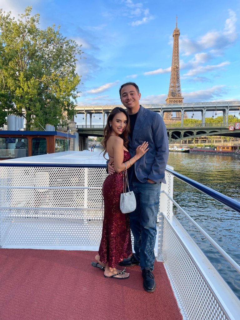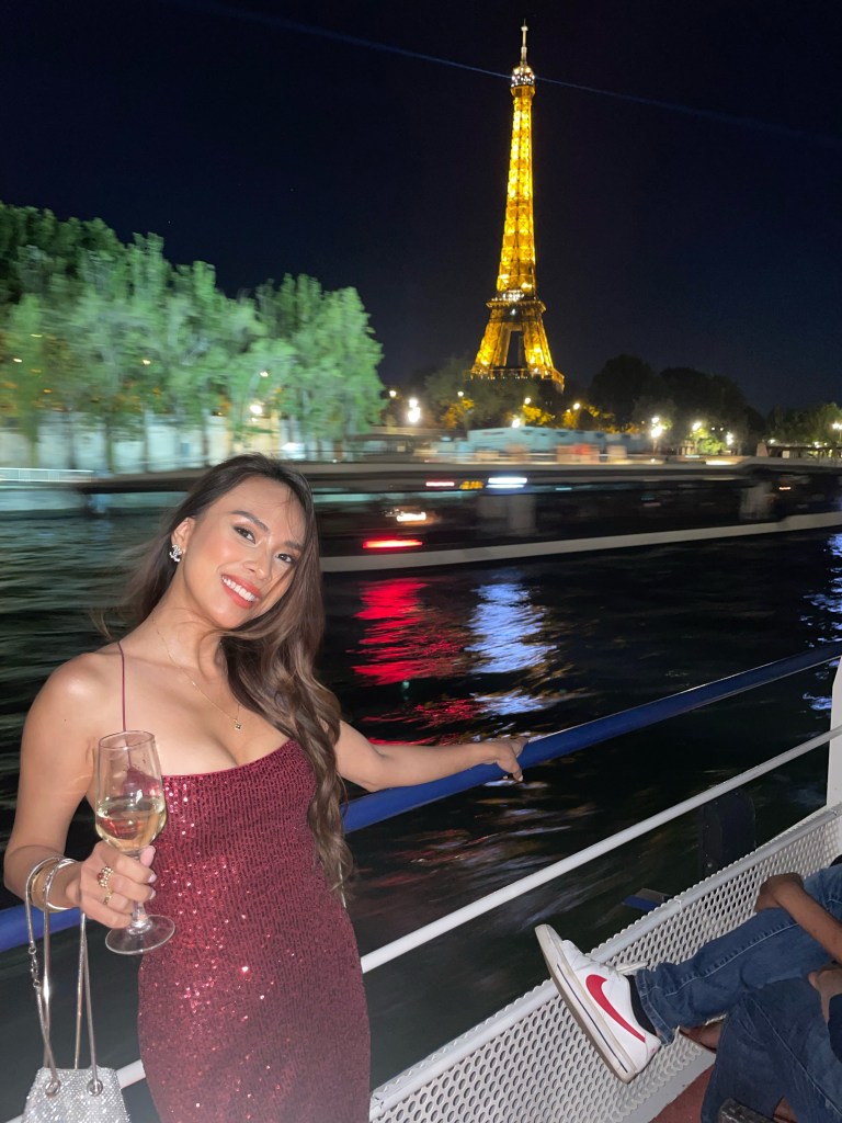 We went last year August 2022 for both our anniversary trip and my birthday week. The weather was perfect. After dinner, we finished our drinks on the rooftop while passing through the bridge, it is the romantic bridge in Paris. Legend has it that if you pass under the bridge for the first time, you have to make a wish, and once you are under the bridge you have to close your eyes and kiss your neighbor or someone beside you and then your wish will come true! After passing by the bridge you’ll see the Eiffel Tower closer and eventually the lights started to blink or sparkle! IT WAS SO MAGICAL AND DREAMY I was giggling inside and can’t get over it! It sparkles every 15 minutes until midnight and I believe it starts at 9pm or 10 pm. After the cruise we then on went for a stroll to the Eiffel Tower and did what locals do, picnic under or at the park by the tower. Checked it off our bucket list! You can bring your food and even alcoholic drinks. There are some who sell bottles of wine or beers. We ended the night watching the last sparkle of the Eiffel Tower until midnight and ubered back to our hotel.