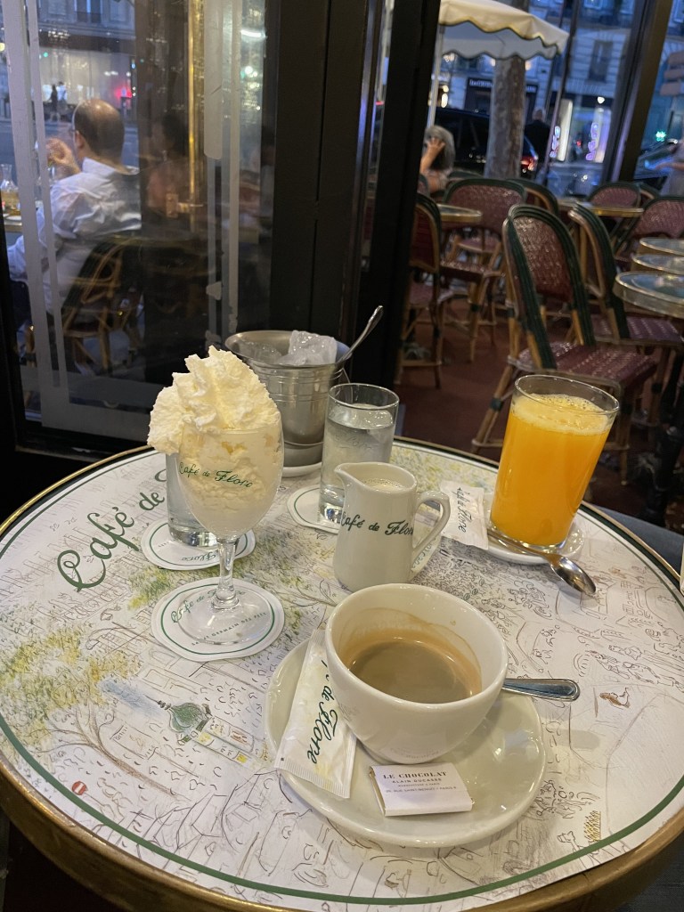 I am a 1% coffee, 99% cream & sugar, so it was a struggle finding a coffee shop that serves coffee with cream & sugar in Europe but I am so glad Cafe de Flore has so many options and even gave me a whipped cream, milk & chocolate with my coffee.